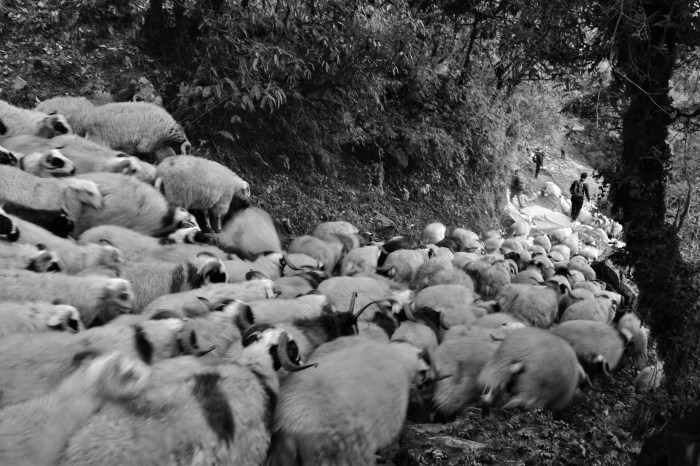 Subiendo a Ghorepani fuimos sorprendidos por una estampida de ovejas