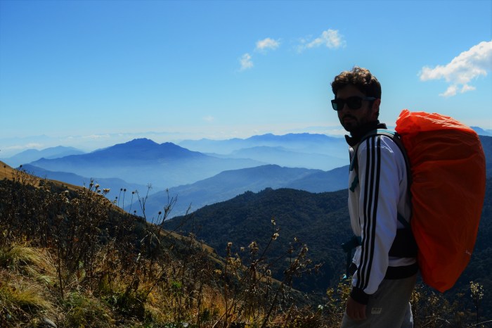 Y es que TODO EL MUNDO suele subir de madrugada para ver amanecer desde allí. A nuestro entender, los amaneceres y atardeceres son el hype absoluto del turismo de hoy en día. Particularmente, no deja de sorprendernos tanta expectación por algo que solamente sucede todos los días. A las seis de la mañana, según nos dijeron en el check point, alrededor de trescientas personas ocupaban la cima. A las ocho de la mañana, éramos cinco allí arriba. Mientras ganábamos altura, tomábamos perspectiva de los bosques y praderas alpinas, hasta que finalmente nos elevamos por encima de las copas de los árboles. Al cabo de una hora, pudimos ver el Himalaya en todo su esplendor.